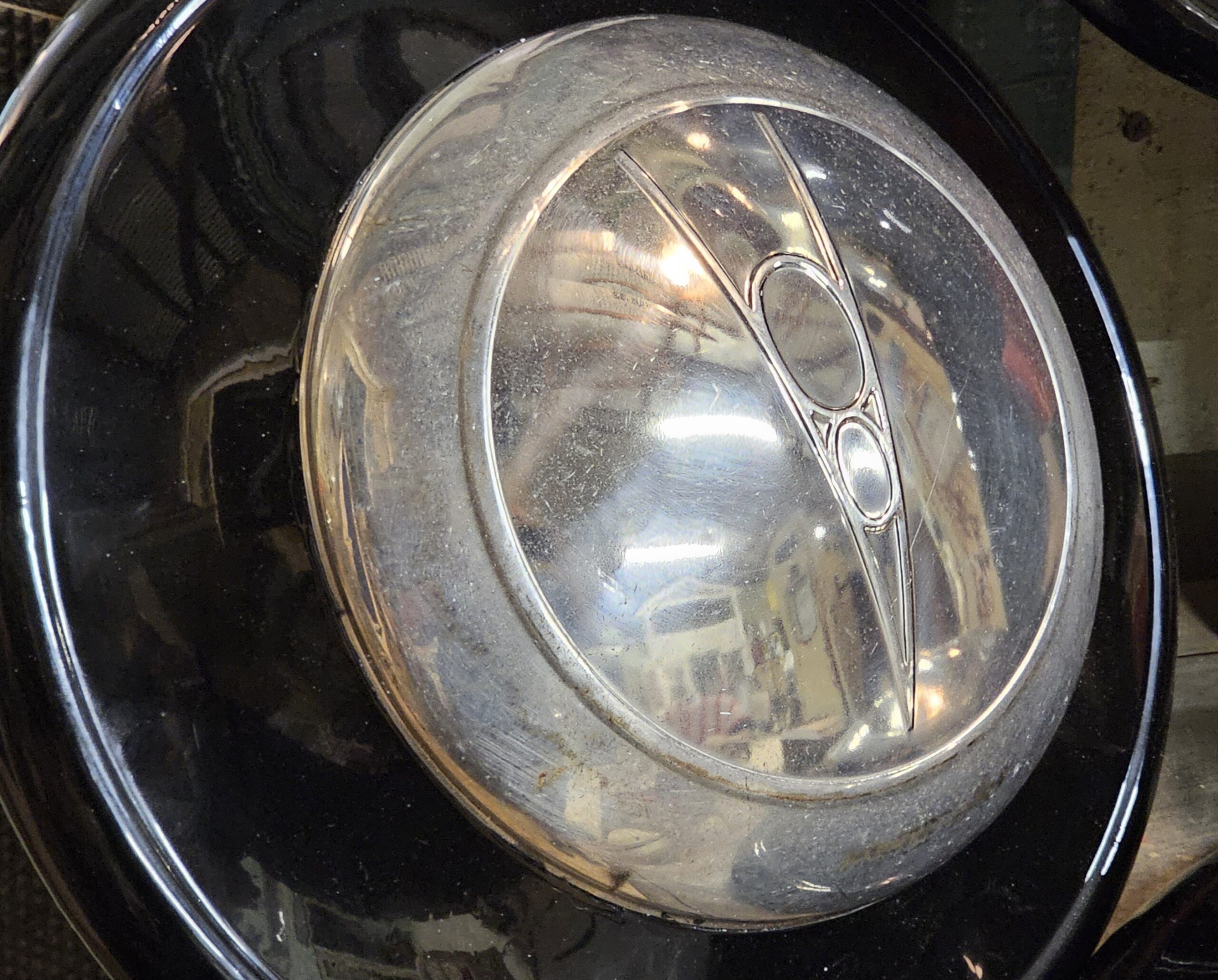 1937 Hubcaps Set Of 4 This is a set of originals. They are for a driver, not near clean enough for show. They have been powder coated black as pictures show. But centers all have some issue, all centers pictured. May be dinged, scratched and not polished. Grade is a 6/10. These fit all wide 5 bolt pattern wheels from 1936-39. Grumps Parts So-Cal.
