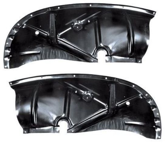 1939 DLX-40 Front Inner Fender Aprons Also fits 1940-41 Pickup. Brand new, these inner aprons are setup for all stock applications. High quality. We also offer a set for Mustang Clip.