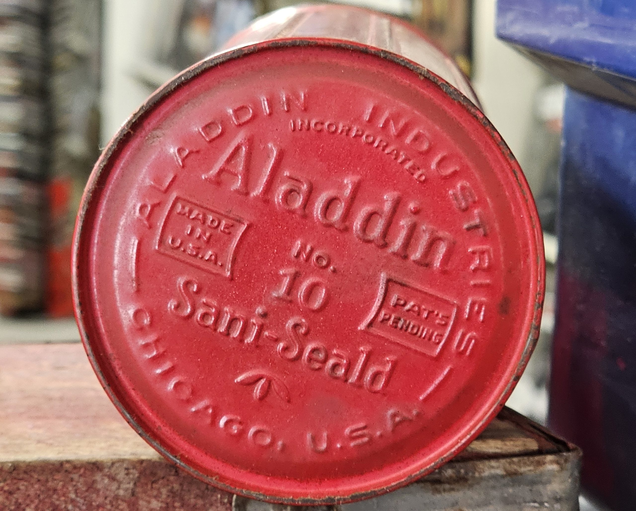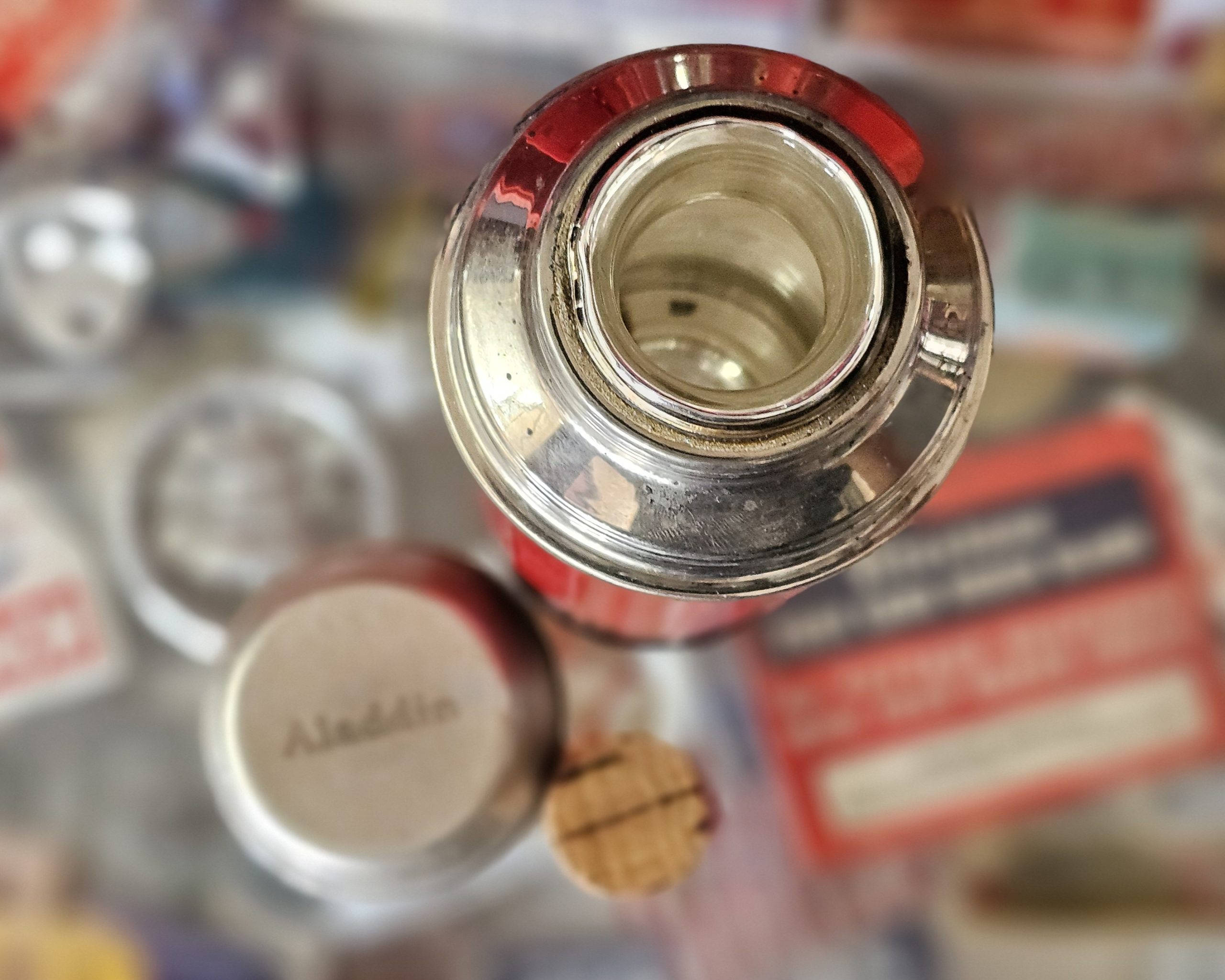 Aladdin No 10 Sani-Seald Thermos This is a superb thermos, it is an early one. Thinking it is late 1940s-early 1950s. In fantastic condition. No denting, a couple minor red paint issues. Has original cap and original cork stopper. Inside is like it was never used.