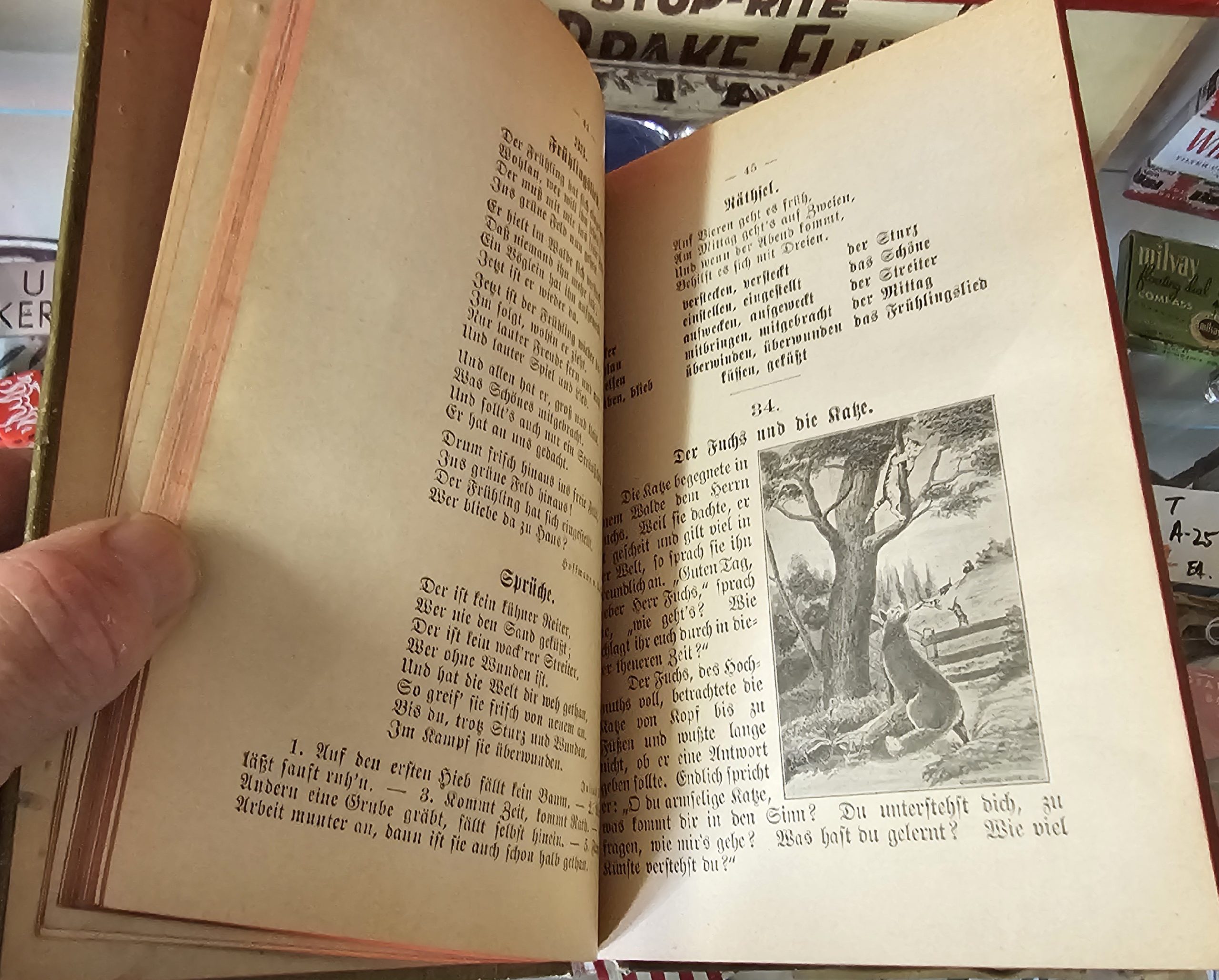 Chicagoer Deutsches Lesebuch  This is part of the "New Standard German Series II" published by Verlag von Geo.Brumder in 1894.  These German first readers were designed for beginners learning the German language.  In very good shape, only exception is some discoloration on back cover shown in back picture.