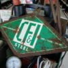Colorado Fuel And Iron Corp CFI Steel Tin Sign, Double Sided Tabs on corners to hold sign up wherever needed. Does show bending on those, and sign itself shows aging. Very neat piece to add to your gas and oil collection, or if you just like signs.