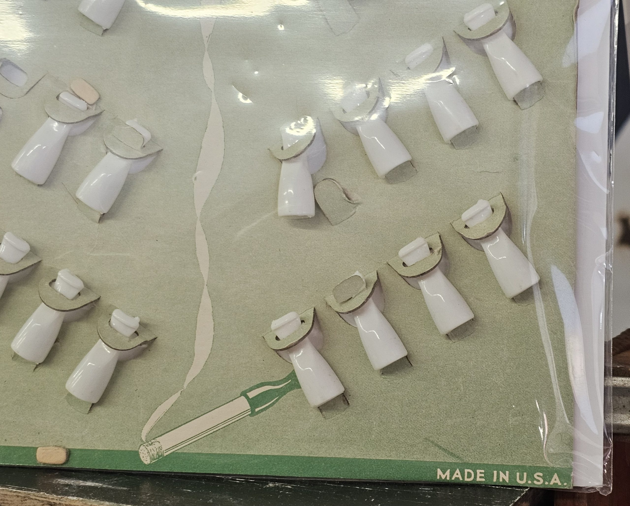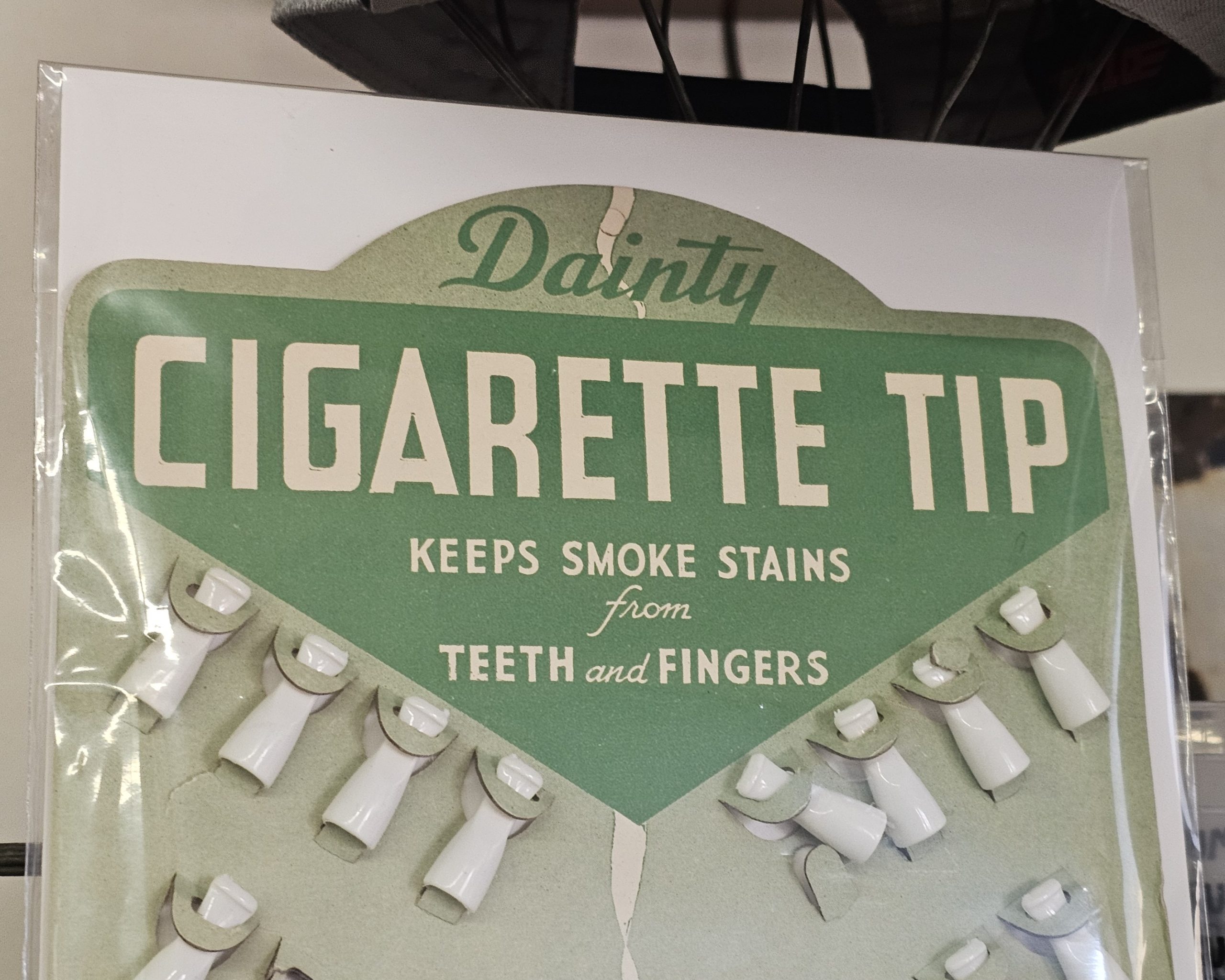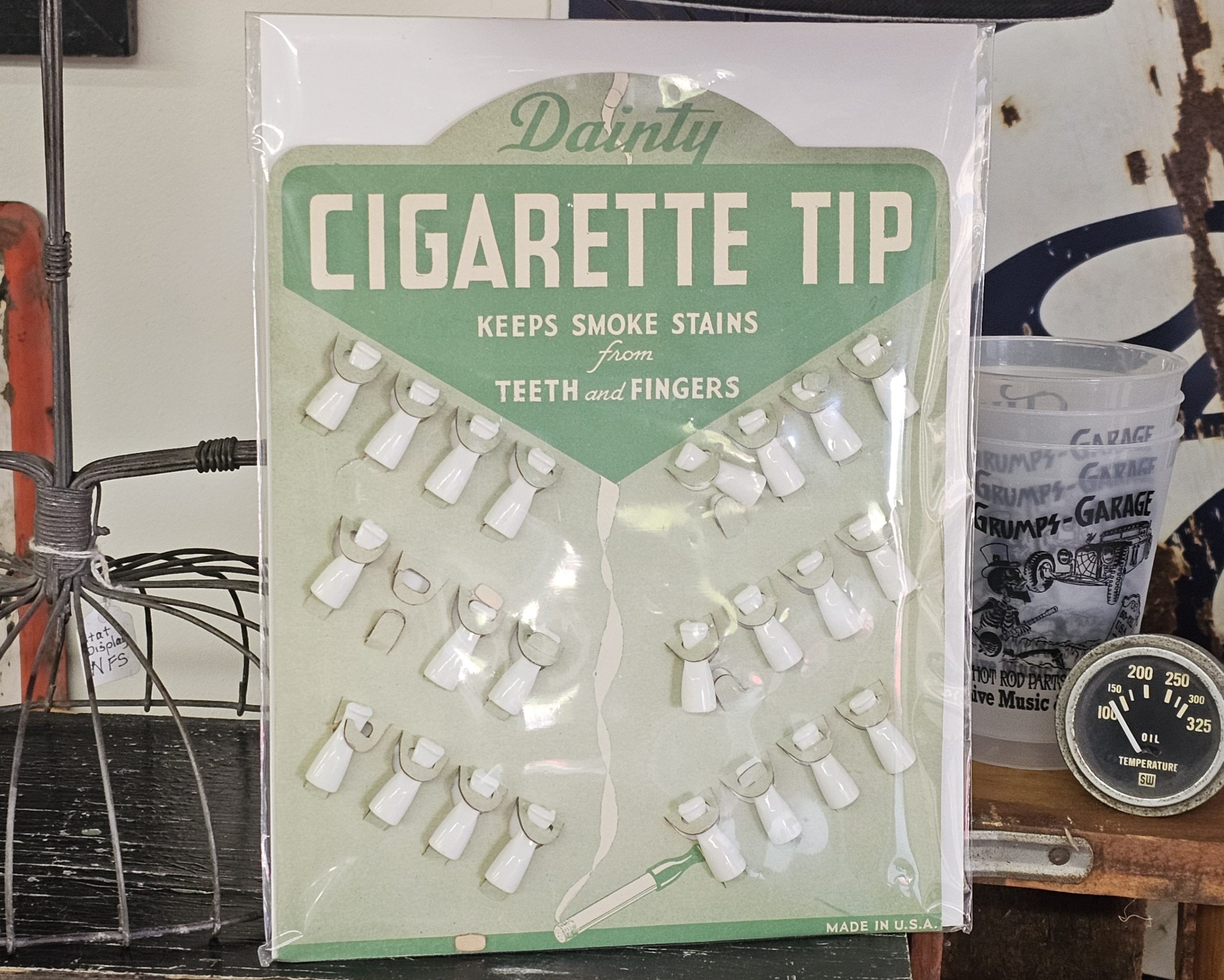 Dainty Cigarette Tip Display New old stock cardboard original. All tips, with exception of one, are still on. Couple small tears in cardboard of a couple of holders. Super neat for the collector of tobacciana or vintage original advertising signage.