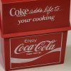 Enjoy Coca-Cola Recipe Box This is a 1970s piece, and is new old stock as all recipes are still wrapped in original plastic. Like new. 'Coke Adds Life...To Your Cooking'. Add some life to your kitchemn with original goods and not mass produced imported stuff that is found everywhere.