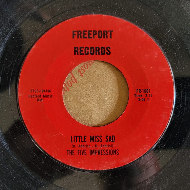 Five Impressions Little Miss Sad Hey Lover 7", 45 RPM Genre is Garage Rock. Freeport Records FR-1001, 1965. Generic sleeve, record is very good+. (D) With 1000's of artists from the early 1980s and older along with combined freight, you can save and grow your collection with Grumps.