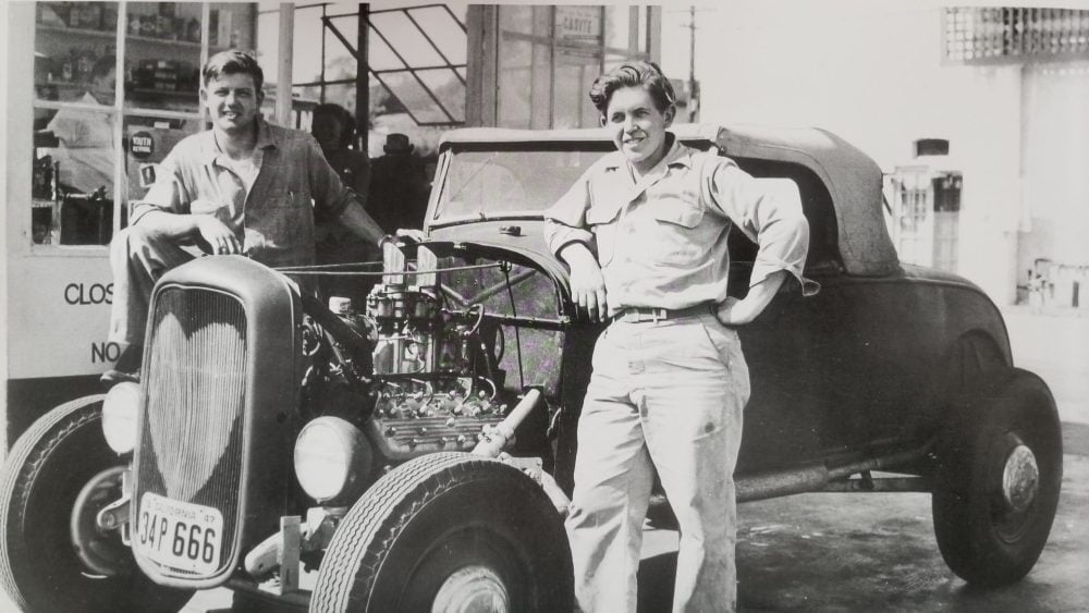Flathead A Roadster Hot Rod In Gas Station 1947 reprint. These pictures that are 12″ by 18″ in size, on triple weight high gloss card stock. Nearly all of these are vintage original photos that were either factory photos, publicity shots, or used in advertising when the cars were new. Others are my own original photographs taken for release here.