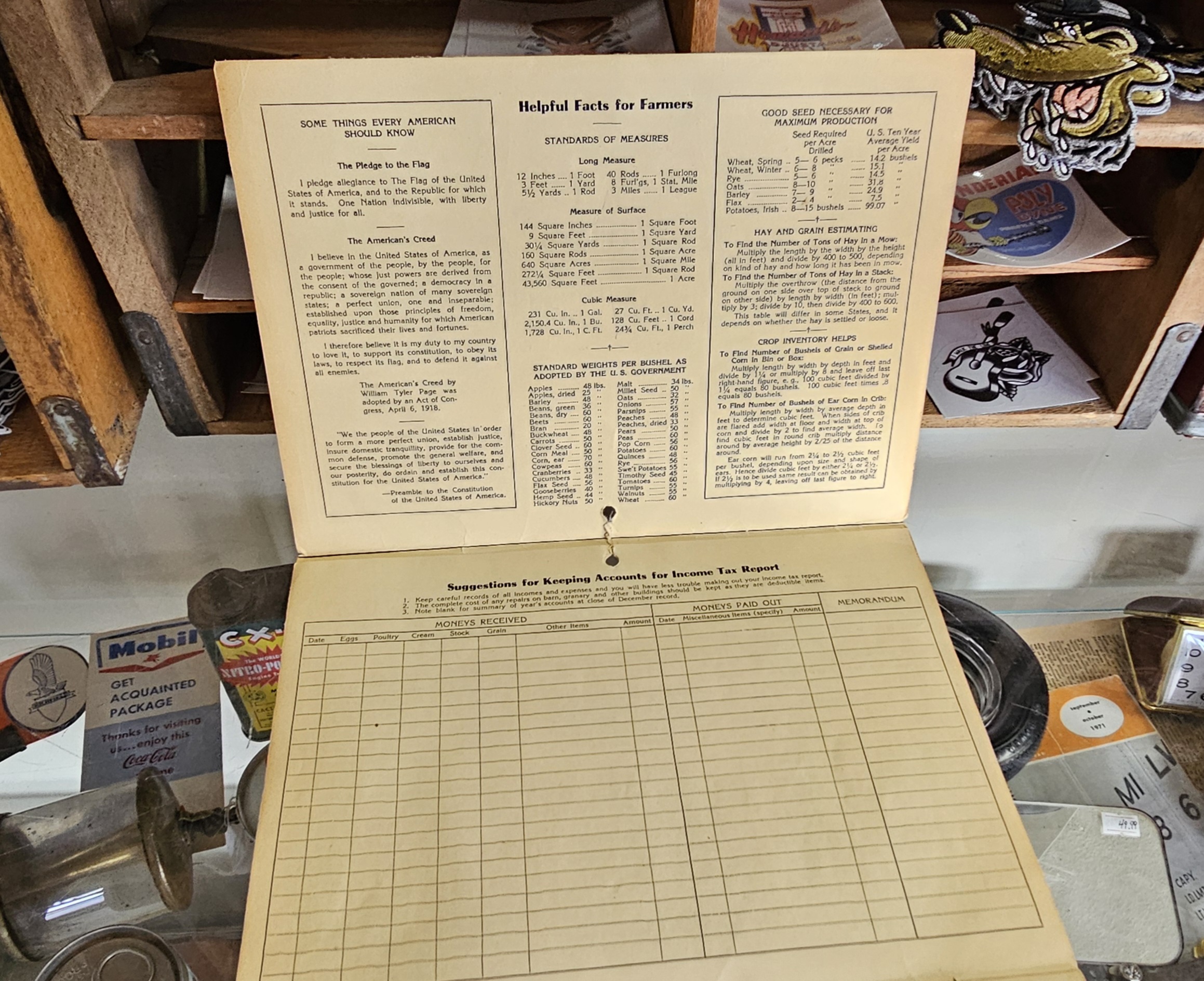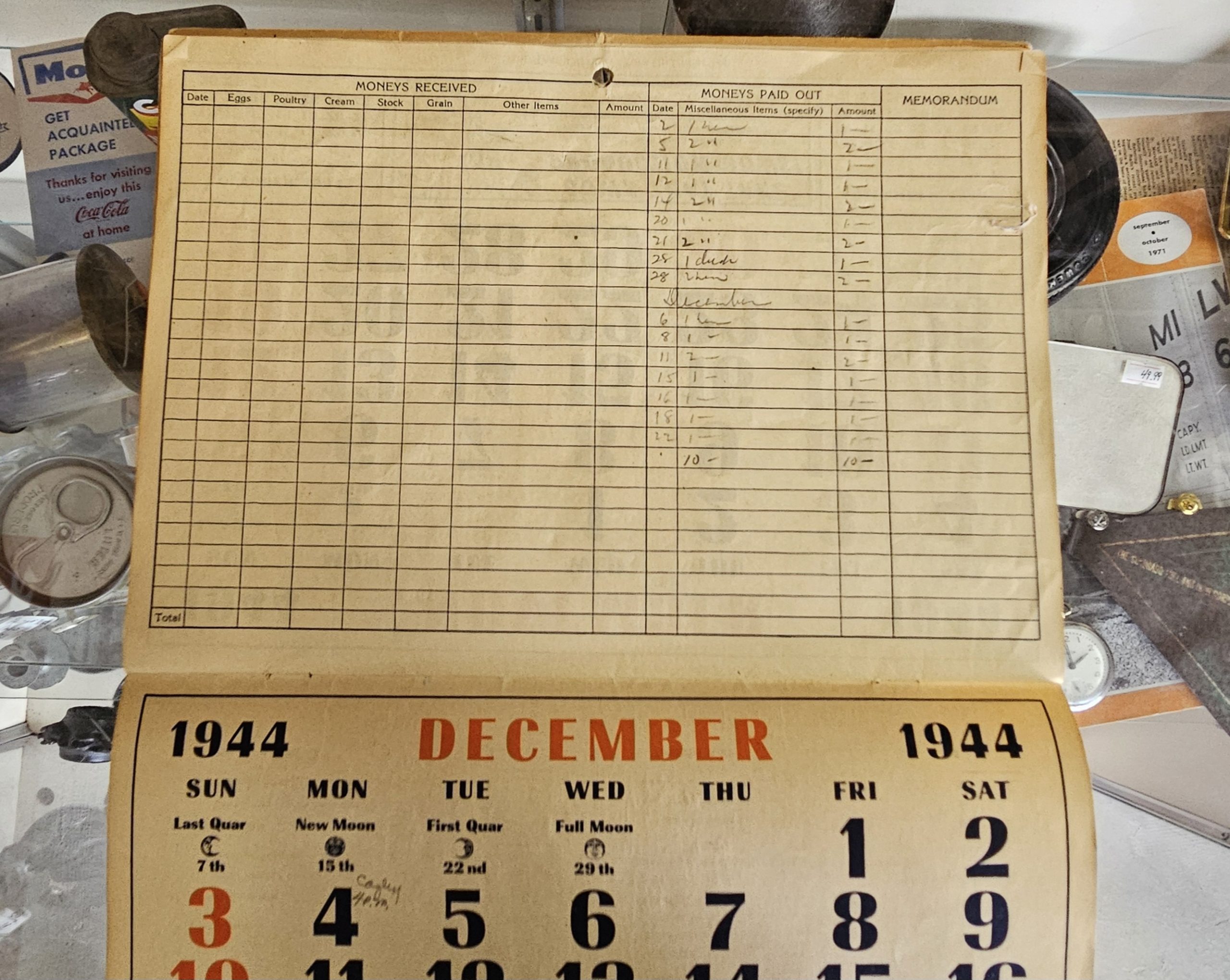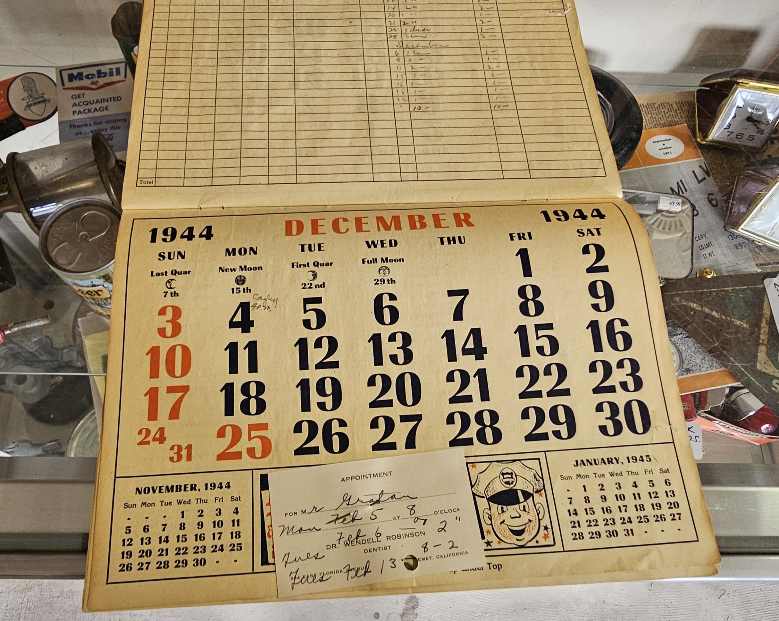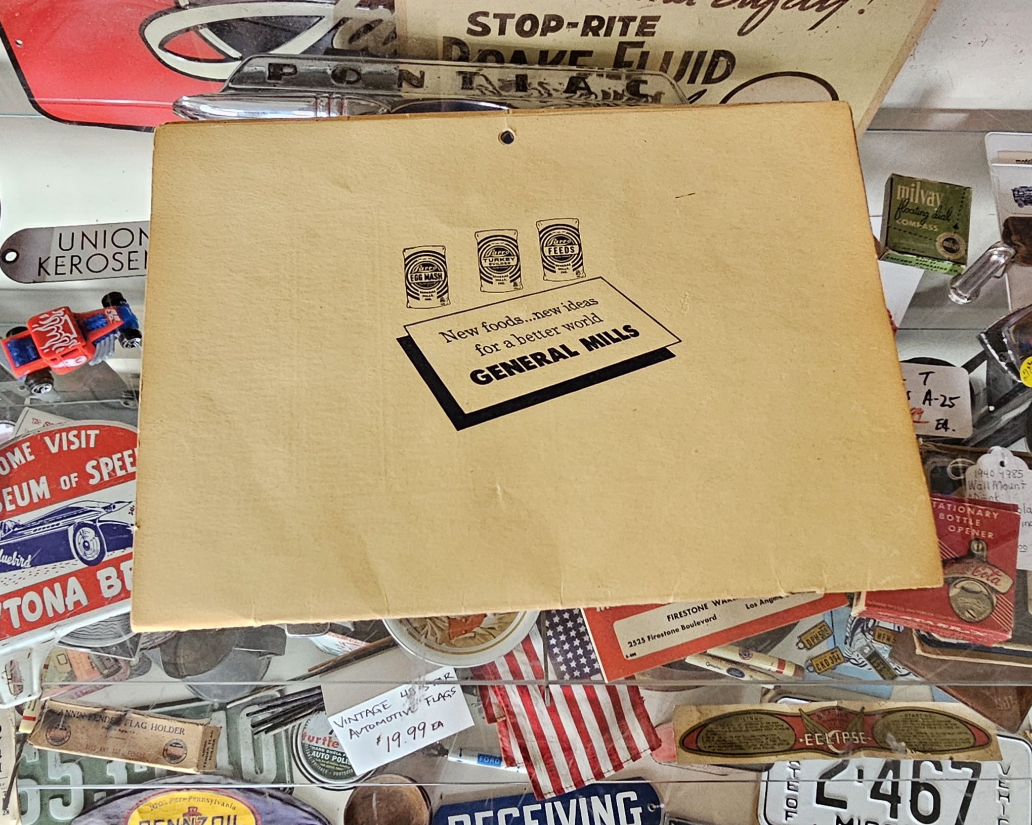 General Mills Farm Service Calendar 1944 This is an original calendar and was used monthly on moneys paid out side. Has all months and a bunch of helpful facts for food and weights plus more. Shows aging and hanging hole is torn, but graphics hold strong.