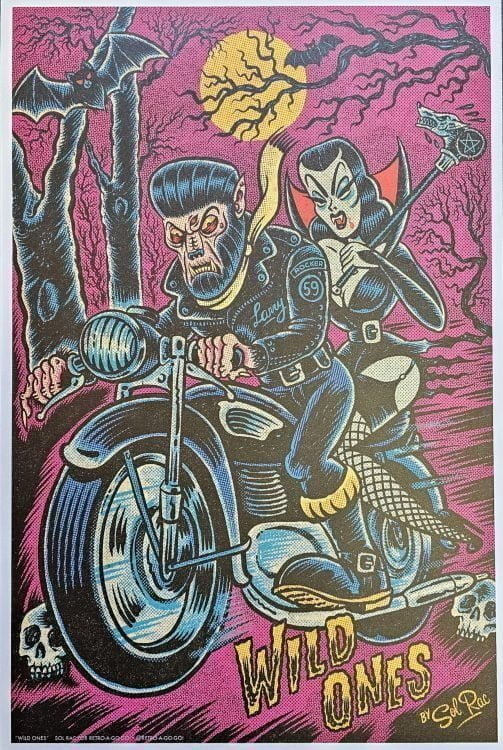Ghouls Wild Ones Art print of Sol Roc. 12" X 18" digital print. Printed on uncoated 80# stock. Smooth, uniform finish for better resolution and Acid-free for archival quality. Prints ship flat, in an acid and lignin free clear bag with a rigid backer.