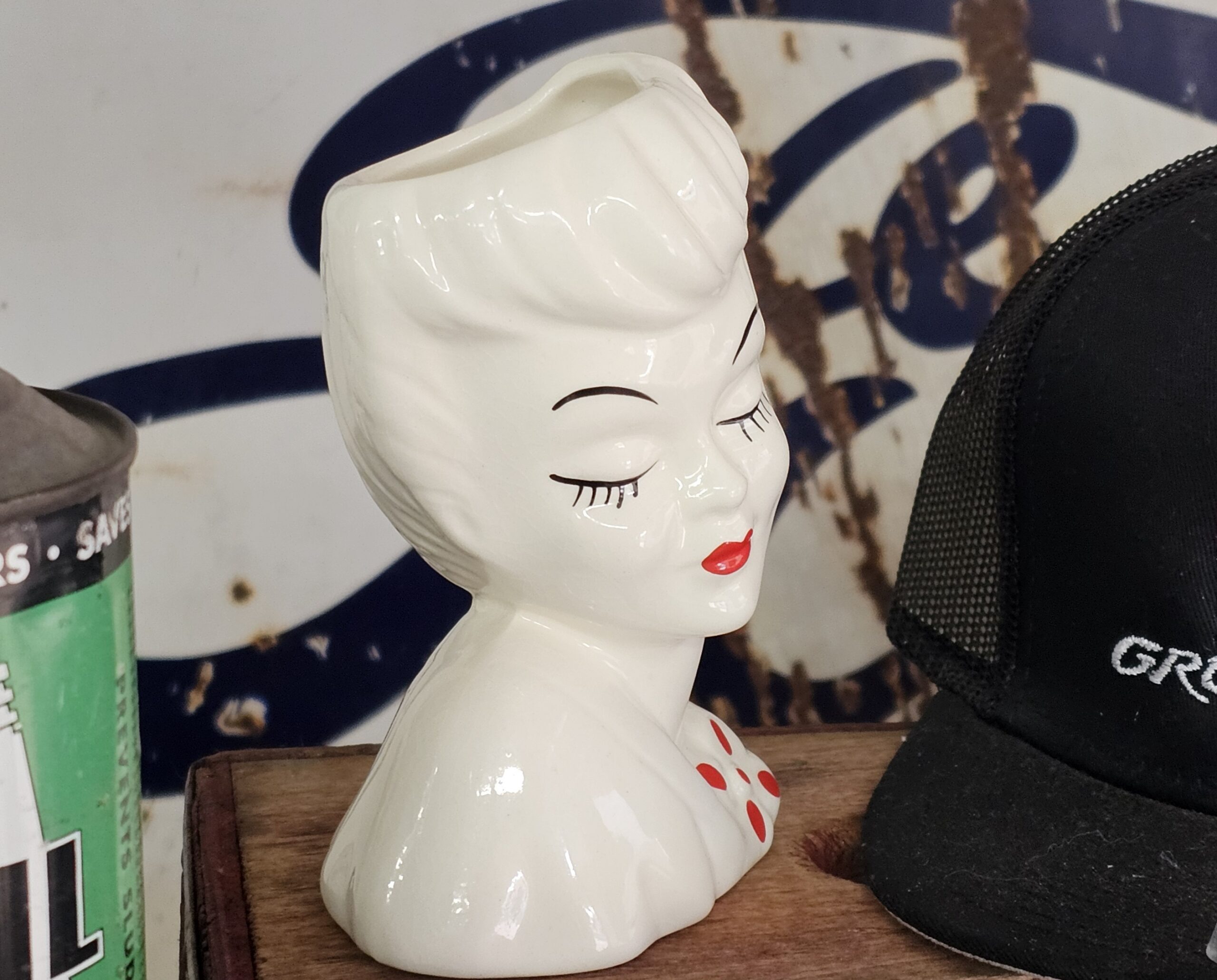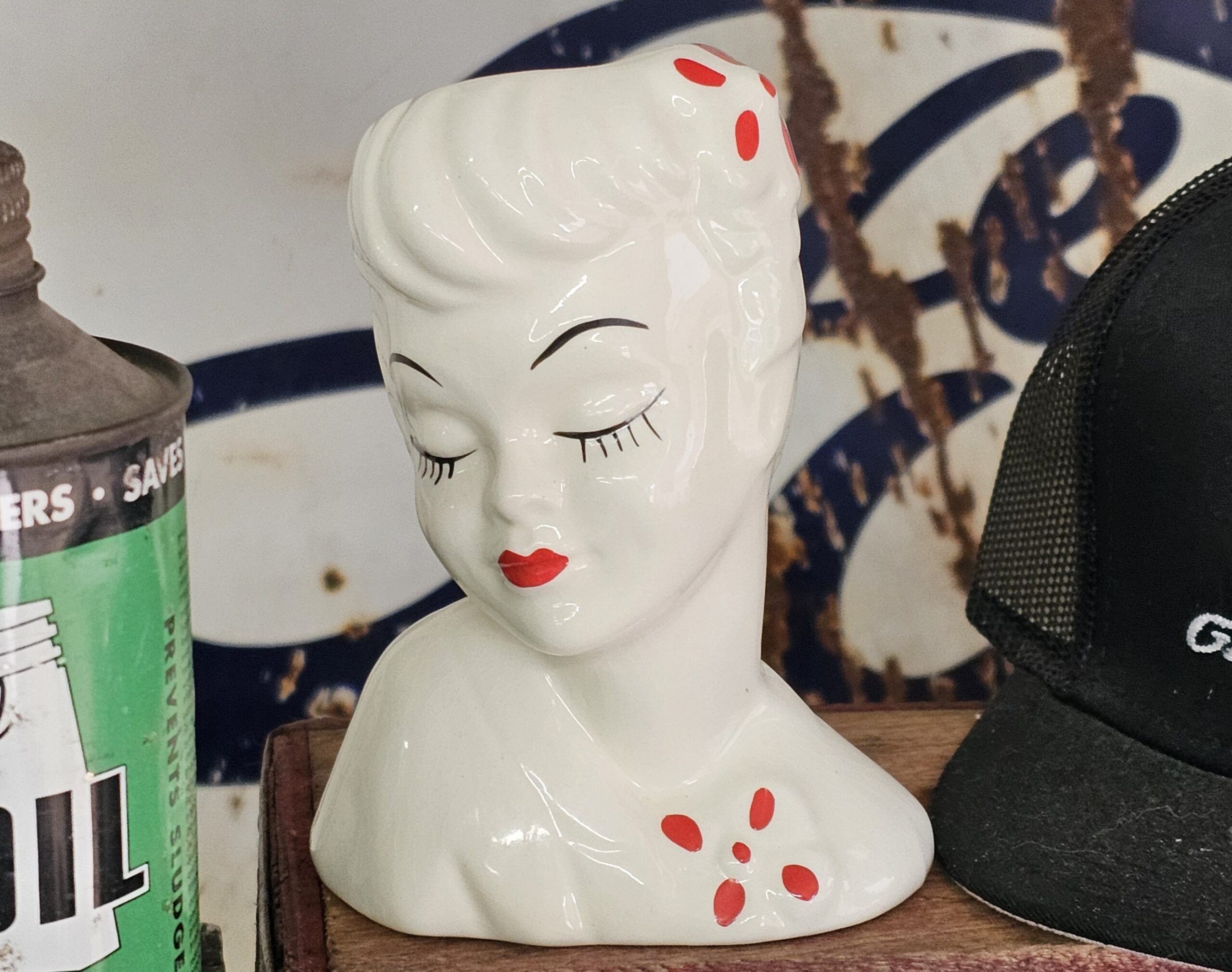Glamour Girl Head Vase This is in fantastic condition, no chips or cracks, doesn't even look to have been used. A popular item from the mid-20th century, often associated with actresses like Betty Grable. These pieces are part of the "glamour girl" or "pin-up" style that was very popular in the 1940s and 1950s.