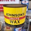 Johnsons Paste Wax Can This is a 1950s Johnson's Wax can. Has some hardened product remaining and a slight discoloration on lid. But no denting and fantastic color. Makes for ideal vintage garage décor, for those who prefer to use original American products.
