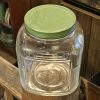 Kitchen Countertop Jar Green Lid This is an original 1940s-1950s jar. No chips or cracks although lid shows it has been used. If you are looking for some vintage jars for your kitchen we have a few to choose from. This is perfect for a kitchen with green accents.
