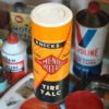 Knicks Mend-Rite Tire Talc Cardboard can is like new, but no product remains. Vibrant color. Web only (GV).