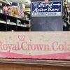 Royal Crown Cola Corrugated Crate These would be more on the rarer side than the wooden boxes because the corrugated fiber material wouldn't last like wood. It is metal framed and in good shape with one minor teat by handle grip on one end. Measures 17" X 11" X 5 1/2" and would have held 24 16oz. bottles.