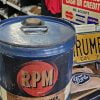 RPM Multi-Service Gear Lubricant Can, 35 Pound Color and graphics remain vibrant and very readable. Had a factory sticker of lubricant weight placed on front. Only dent is pictured. For the hot rod fan or collector of oil collectibles. Also makes for great vintage décor in your garage or man cave. It is time to use original American goods and not imported copies.