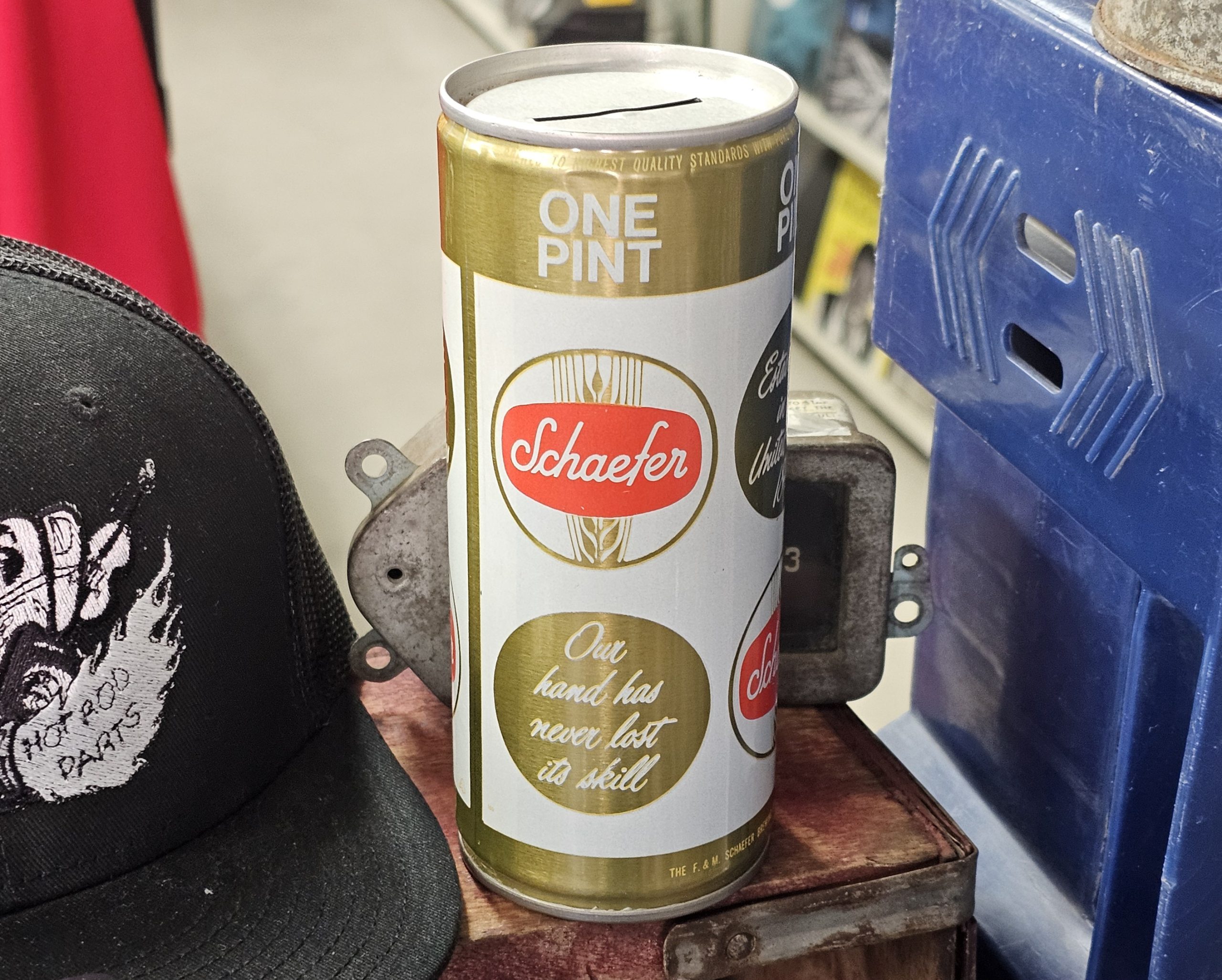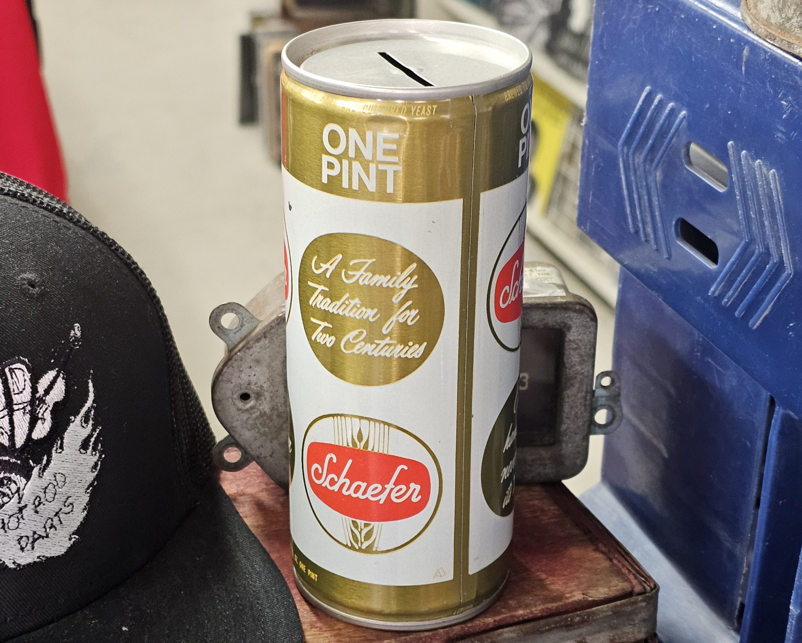 Schaefer Brewing Co Beer Can Bank This is a late 1960s-early 1970s advertising bank. One of the biggest selling beers in America previous to the 1970s. Vintage Schaefer Beer Can One Pint Can Bank Breweriana Barware Bar Memorabilia Collectible Perfect for advertising, bank or beer collectors.