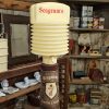 Seagrams Bottle With Pump Dispenser This is a heavy original one gallon bottle with an accordion pump dispensing top. Original label in good shape, back has embossing at top just below the neck. Perfect for use, or to add to your alcohol collection.