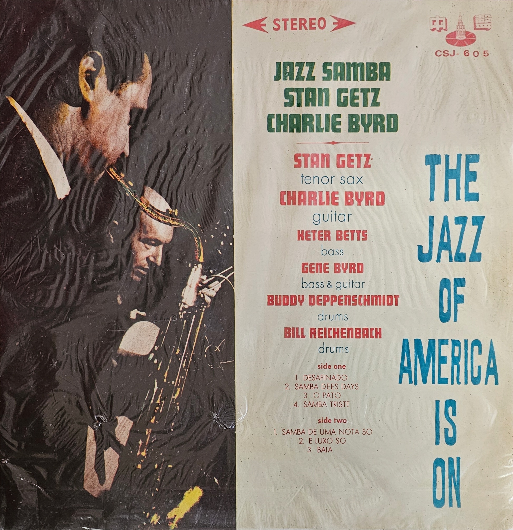 Stan Getz Charlie Byrd Jazz Samba Vinyl. 中聲 CSJ-605, 1968 Unofficial Taiwan release, Red LP. Cover is very good+ and LP is very good+/excellent. With combined freight you save with the more you buy. Grow your collection of new or used CD & Vinyl with Grumps. Pick from almost any genre.