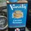 Varsity Dissolves Rust Chrome Renewer Tin 1937 can with original cap. Size is 8oz. Little product remains and graphics are still beautiful. Web only (GV). The time has come to look to the past, this way American made goods can far outlast reproduction crap for home and garage décor.